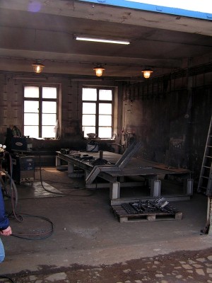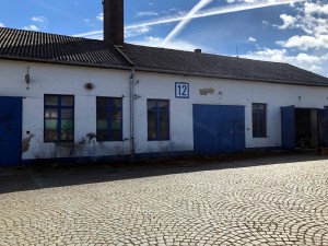 Budova č. 12 je jednopodlažní, nepodsklepená budova se skladem a lakovnou (zastavěná plocha 382 m2, výška 4,1 m) na pozemku p. č. St. 2745. Budova má 3 prostory, každý se svým vlastním vstupem/vjezdem – lakovna, dílna, sklad s umývárnou a WC. U západního štítu je malý přístavek sloužící jako příruční sklad. Elektroinstalace je světelná i motorová, vytápění je ústřední s plechovými tělesy, rozvod vody, ohřev vody el. bojlerem, vnitřní kanalizace do veřejného sběrného řadu s napojením na veřejnou kanalizaci.