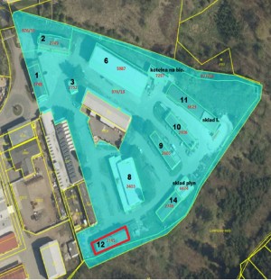 Nemovitosti v areálu Průmyslová č.p. 163, v Třebíči: Pozemek St. 2745 s Budovou č. 12 (sklad a lakovna). Nemovitosti zapsané na LV 16857 pro katastrální území 769738 Třebíč, a to jmenovitě pozemek s příslušenstvím: