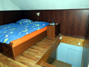 Dvoupodlažní nepodsklepený RD je dispozičně řešen jako 2+1, o celkové užitné ploše 160 m2, na pozemku o celkové výměře 804 m2. V 1.NP je kuchyně s odděleným prostorem, kde je umístěn elektro kotel a boiler, koupelna, chodba a obývací pokoj. Vytápění ústřední pomocí radiátorů, případně krbem, který je v obývacím pokoji. Z obývacího pokoje vede úzké nestandardní schodiště do 2.NP. V podkroví byla v rámci rekonstrukce zbudována obytná místnost, která je částečně předělena příčkou a rozdělena na prostor ložnice a dětského pokoje (pouze jedno okno ve štítu). Nášlapné vrstvy podlah - plovoucí podlaha, dlažba. Okna dřevěná, 3x plastová, dveře plné a prosklené do obložkových zárubní. Koupelna vybavena standardními zařizovacími předměty - WC, bidet, vana, umyvadlo. Kuchyňská linka standardní. V rámci rekonstrukce byla provedena přístavba uzavřeného proskleného vstupu o velikosti cca 5 m2. Částečně opravena fasáda.