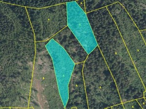 Dva lesní pozemky (12 120 m2) na okraji obce Velké Hamry
