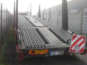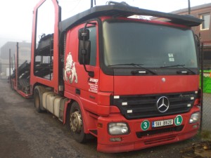 2 nákladní automobily značky Mercedes Benz a 4 nákladní přívěsy
