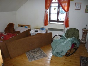 V I. NP je na obytnou část samostatně přístupná dílna - kolna. V průčelí domu je po celé délce chodba, ze které je přístupná prádelna, předsíň, ze které je vstup do kuchyně, koupelny se záchodem. V průčelí domu je obývací pokoj. Z něho vedou levotočivé schody do podkroví, kde je chodba a dvě ložnice.