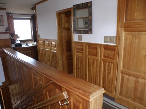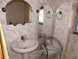 Podlahové krytiny v obytných místnostech jsou parketové vlisy, v dalších místnostech keramická dlažba. V kuchyni je osazena masivní kuchyňská linka doplněná sporákem se sklokeramickou varnou deskou. Interiér domu je zčásti obložen vkusnými dřevěnými kazetami navazujícími na vestavěný masivní nábytek.