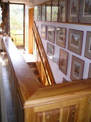 2.NP (podkroví) chodba, sociální zařízení, pracovna, dvě ložnice, dva balkony, dva pokoje; nad podkrovím domu jsou po skládacím žebříku přístupny další půdní úložné prostory.