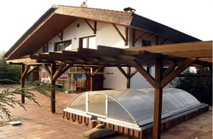 U rodinného domu je krytý bazén.