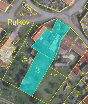 - p.č. St. 14, o výměře 237 m2, zastavěná plocha a nádvoří. Součástí je stavba: Pulkov, č. p. 15, jiná st. Stavba stojí na pozemku p.č.: St. 14.